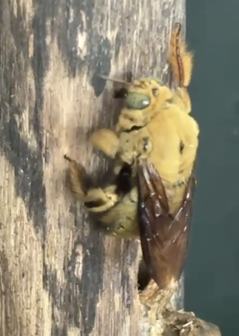 One of Beatrice’s offspring and an example of a male Broad Handed Carpenter Bee
